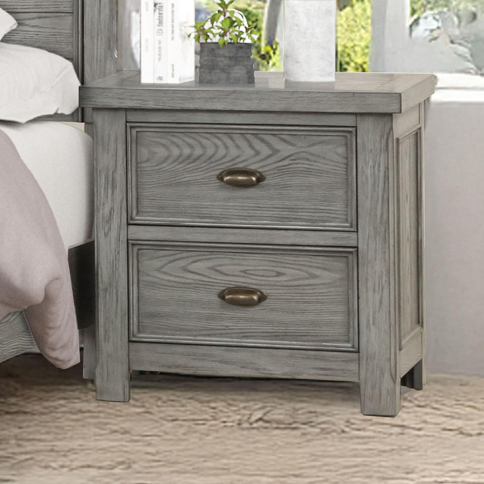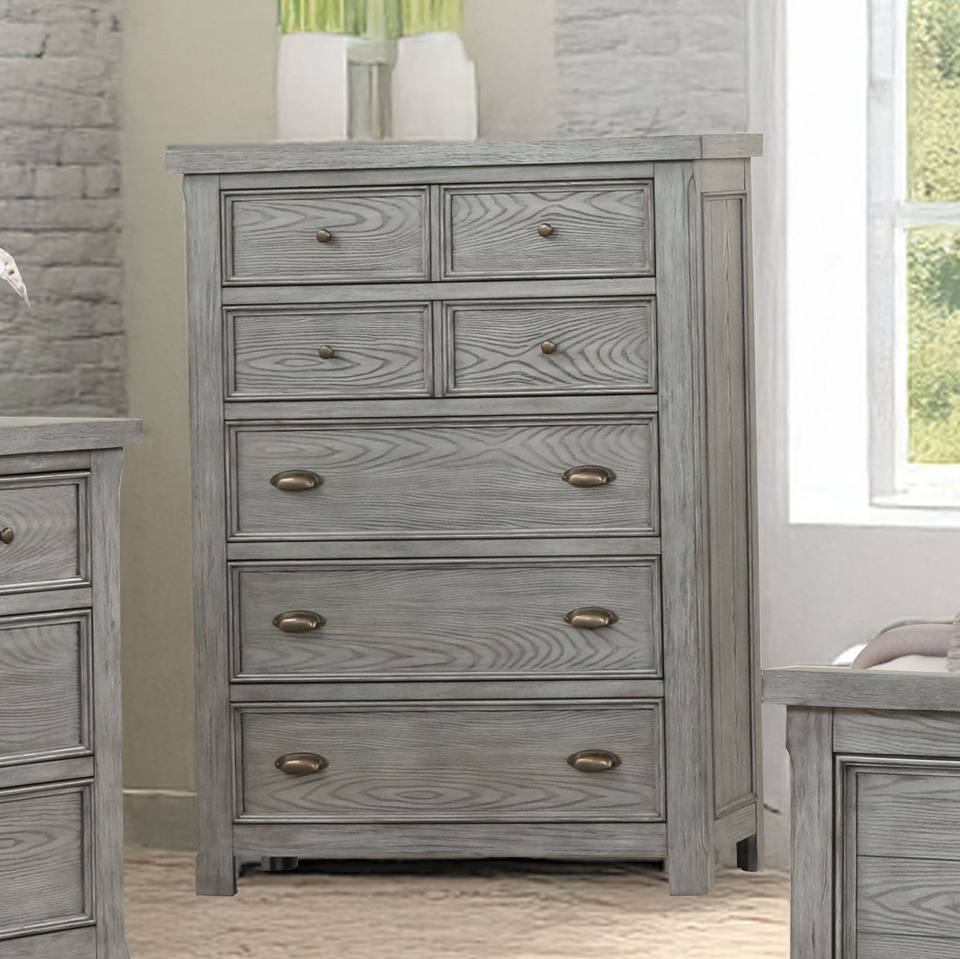 Commode de rangement pour chambre à coucher à 7 tiroirs et quincaillerie variée, meuble rustique décontracté, style ferme moderne, gris