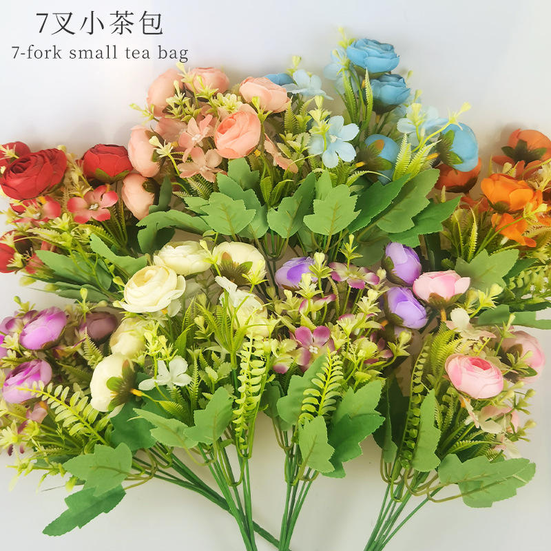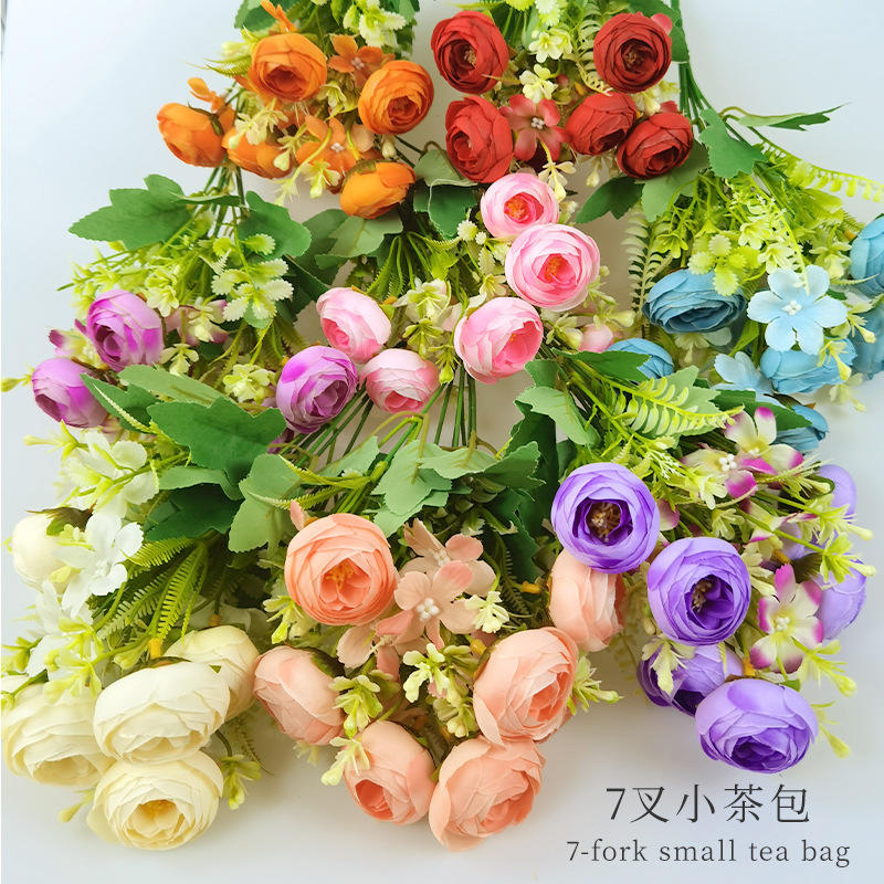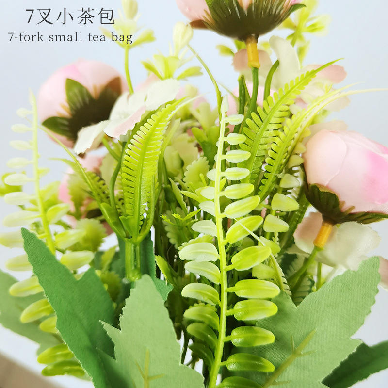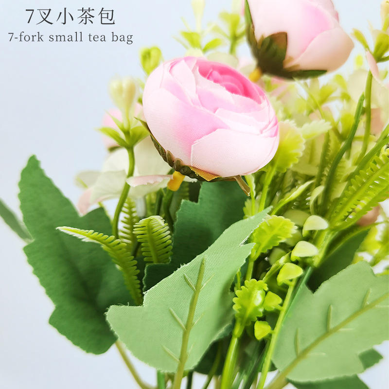 Bouquet de fleurs artificielles en soie à 7 tiges, style sachet de thé, 35 cm, haute simulation, pour décoration de mariage, de maison et accessoire de photographie