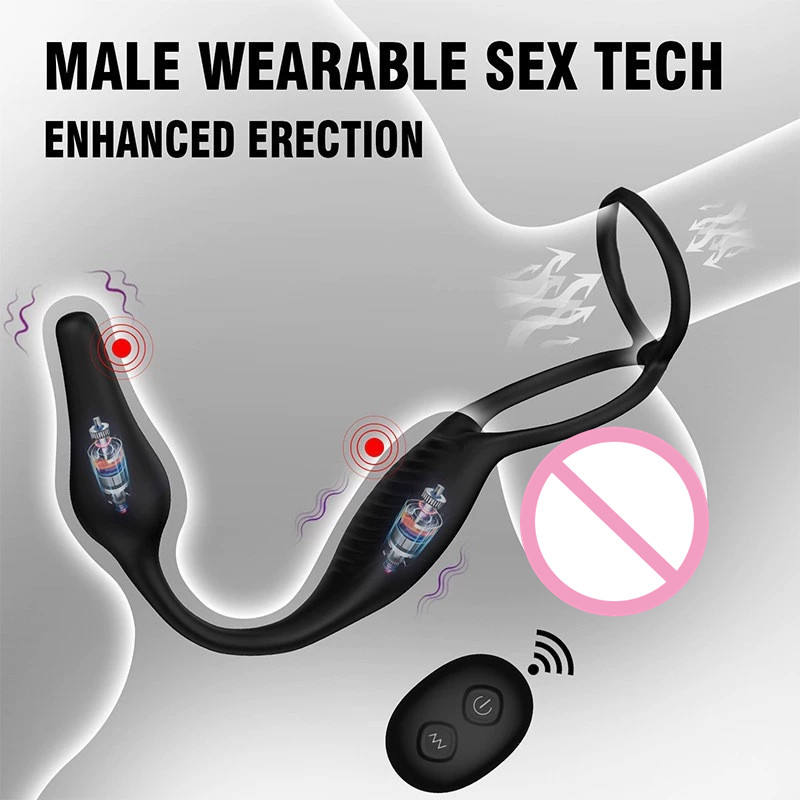 Masseur de prostate à 7 fréquences, télécommandé, en silicone, avec deux anneaux anaux, pour adultes