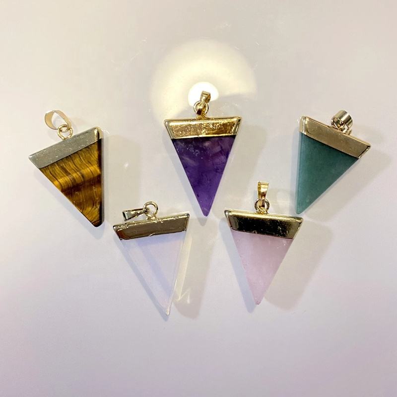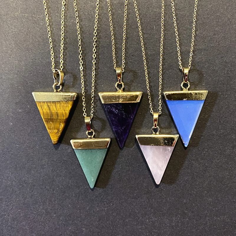 7 pierres précieuses cristal Quartz Triangle guérison pierre naturelle collier pendentif en or pendentif géométrique pierre précieuse