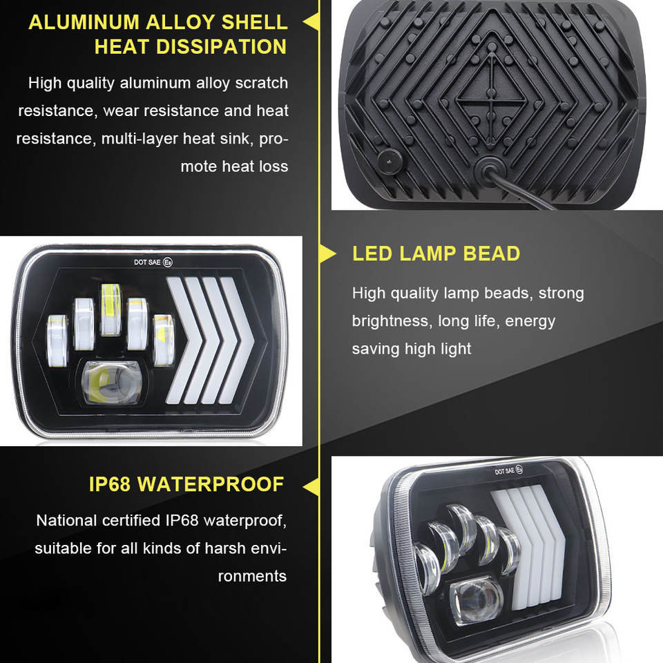 Phare LED H4 7 pouces 100W 6000K 6000 Lumens, étanche IP67, montage universel, phare carré pour voiture