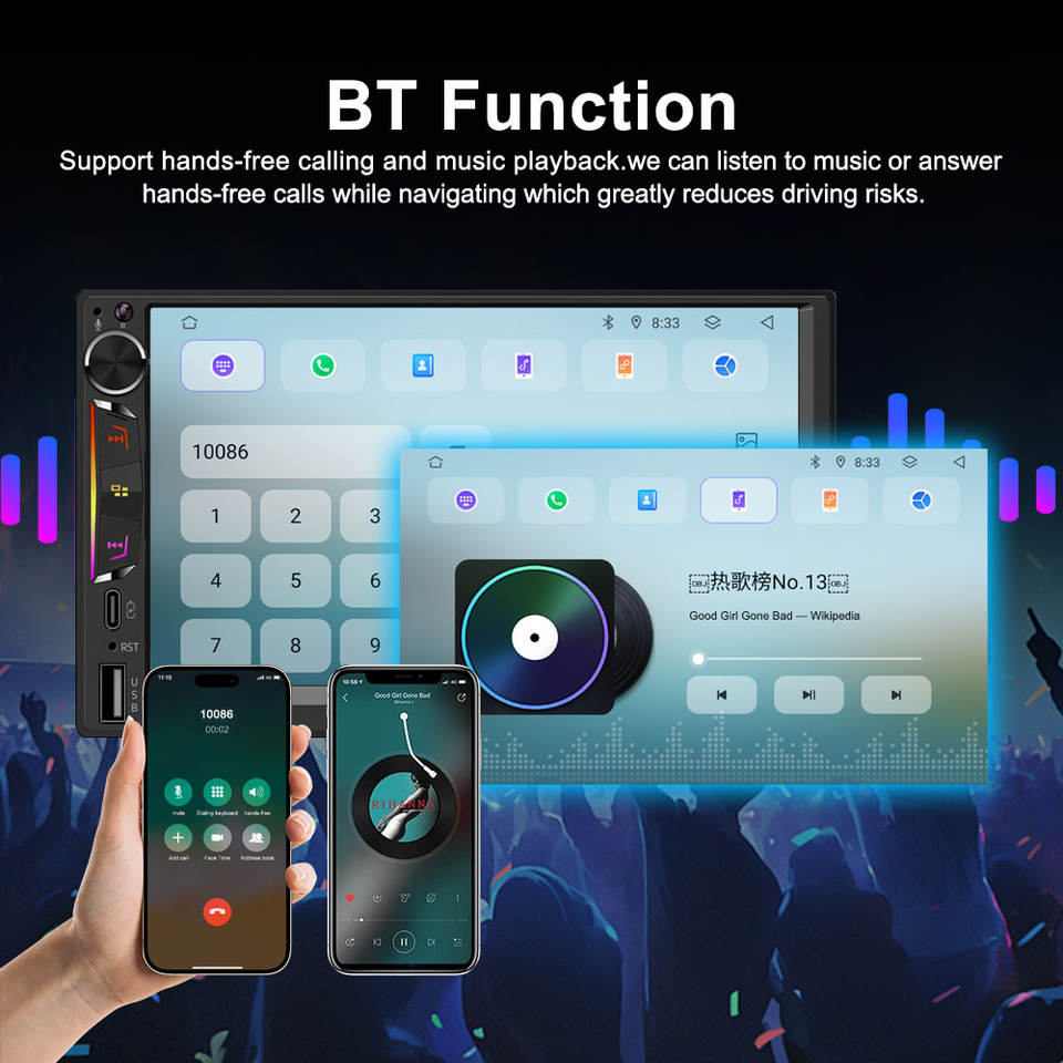 Autoradio Android 2 Din 7 pouces avec écran partagé, GPS, navigation, CarPlay sans fil, Android Auto