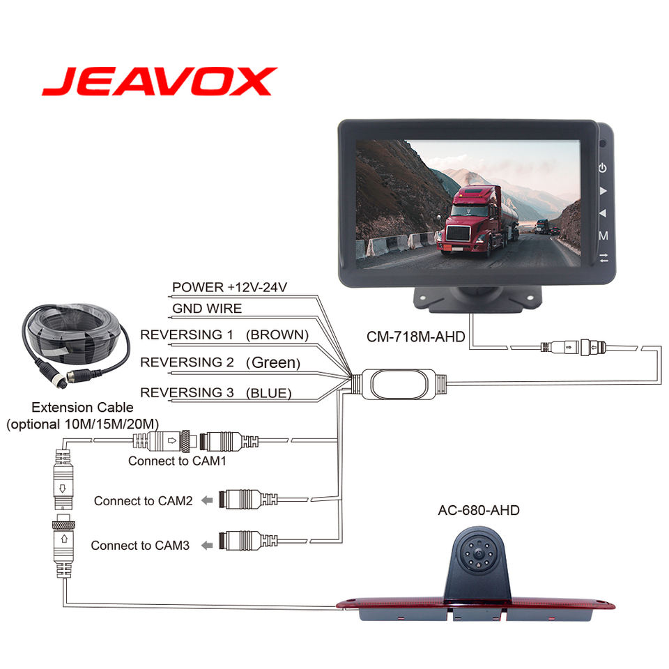 Caméra de reverse, Moniteur, Caméra de recul, 3CH Vidéo AHD Moniteur D'entrée Système, Caméra de lumière de frein, Système d'aide à l'inversion de stationnementType