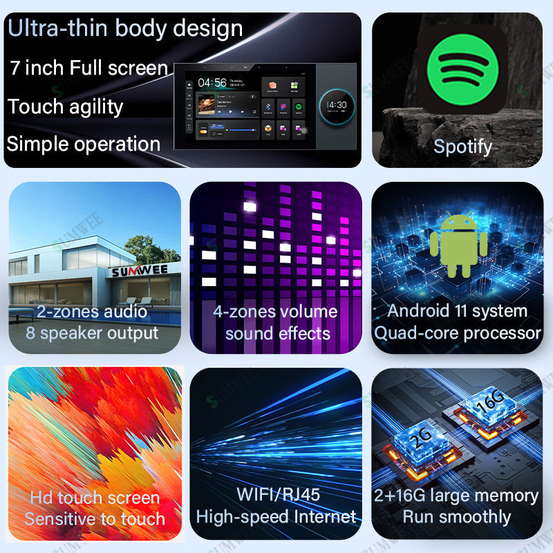 7 pouces Android 11 Tuya panneau de commande intelligent lecteur de musique USB Zigbee intégré électrique écran tactile Audio amplificateur mural
