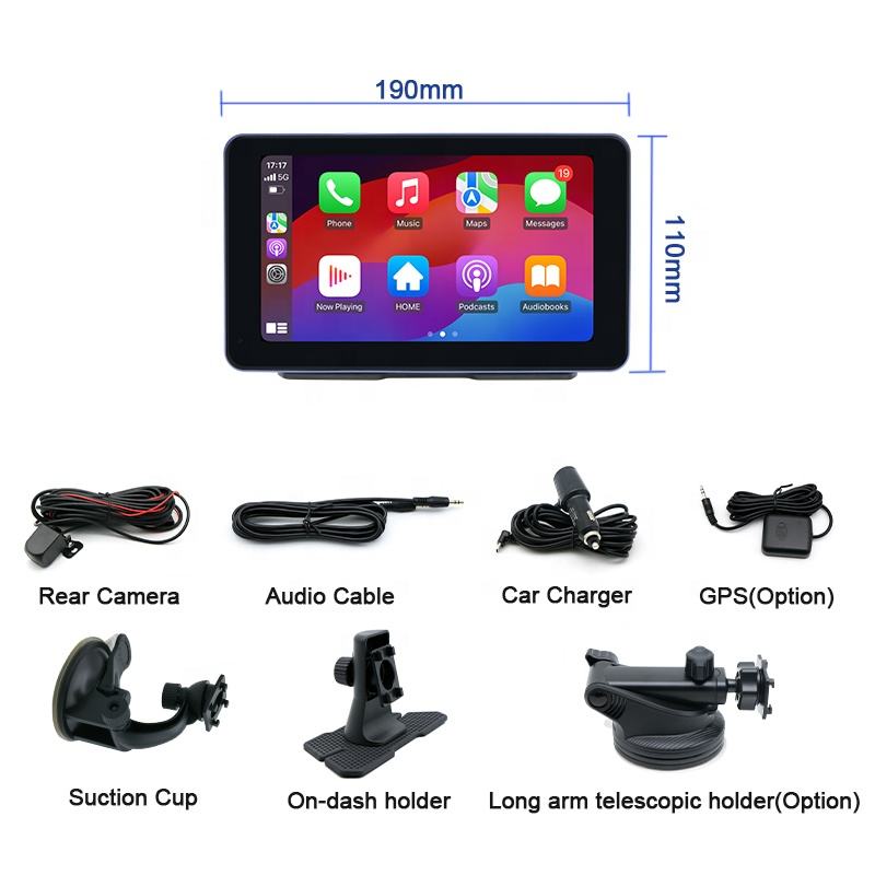 Lecteur multimédia automobile 7 pouces avec CarPlay sans fil, Android Auto, navigation, sortie audio, plug and play, écran de voiture pour toutes les voitures