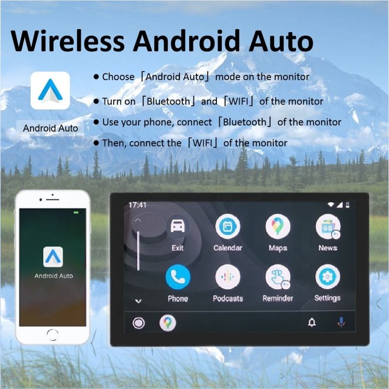 Écran Carplay 7 pouces BT Aux 4K+1080P Double caméra Écran tactile Sans fil Android Auto Apple Carplay