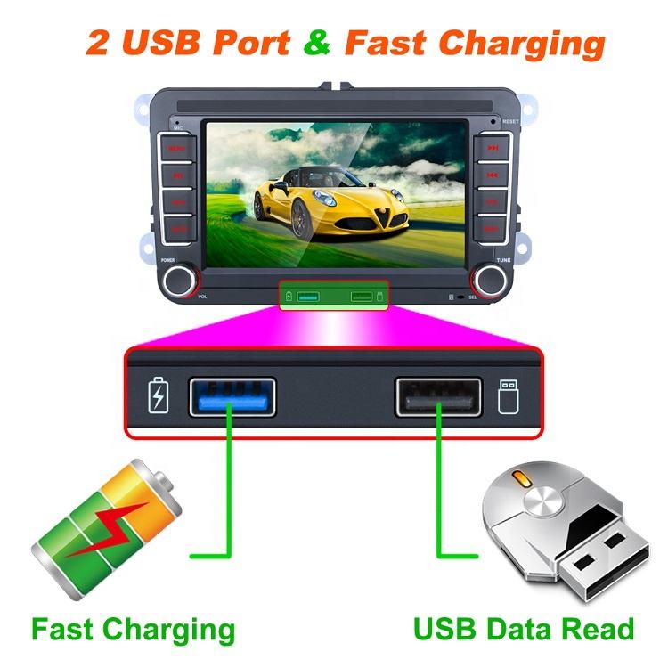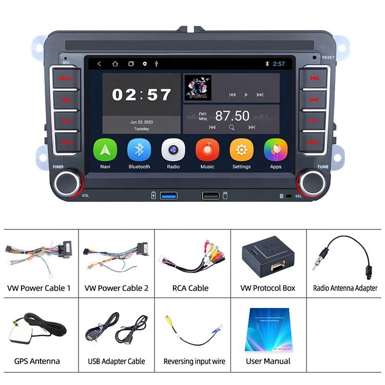 7 pouces HD LCD écran tactile Android 9 voiture Audio stéréo Double USB FM Radio voiture lecteur multimédia avec Navigation GPS pour VW
