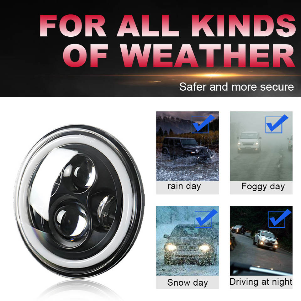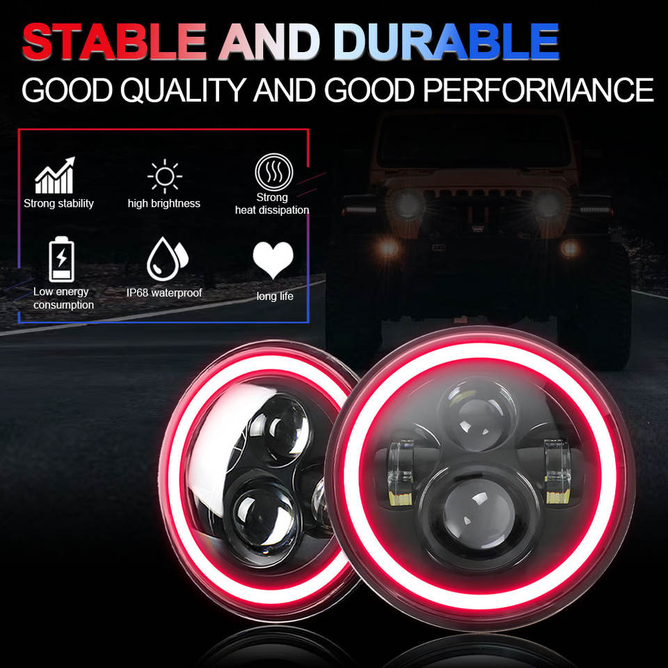 Phare LED 7 pouces avec anneau lumineux rouge, bleu, vert, DRL 6000K, pour Wrangler, universel, 3000LM, ampoule H4, 30W, 12V