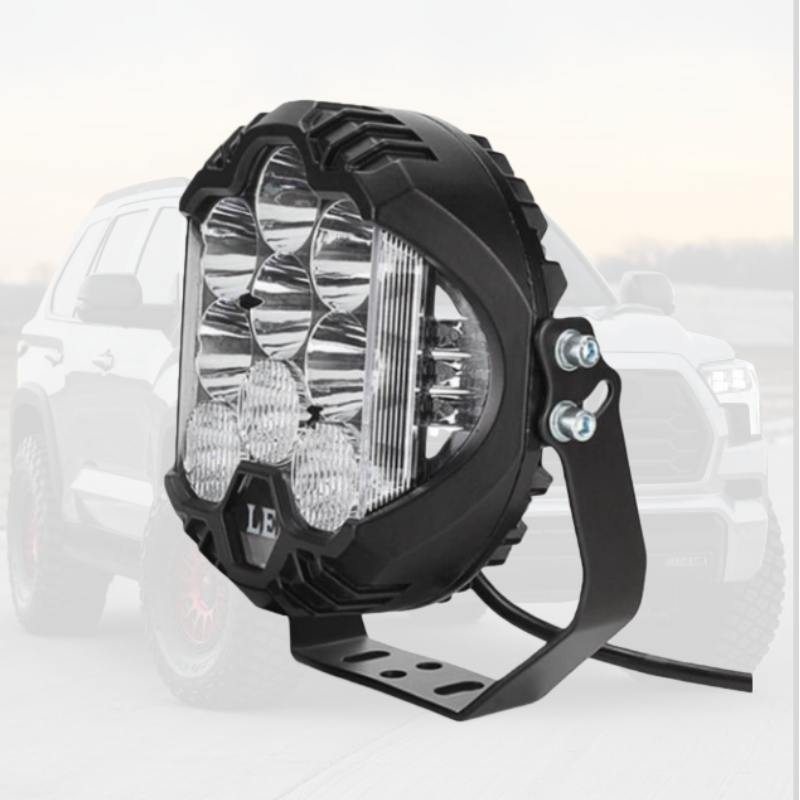 Phares LED 7 pouces et barre de travail, phare blanc jaune antibrouillard 90W 12V-24V LED pour moto, voiture, camion, tout-terrain, état neuf