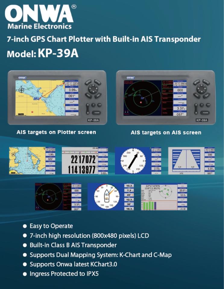 Traceur de cartes GPS marin 7 pouces avec transpondeur AIS de classe B intégré, version améliorée KP-39A