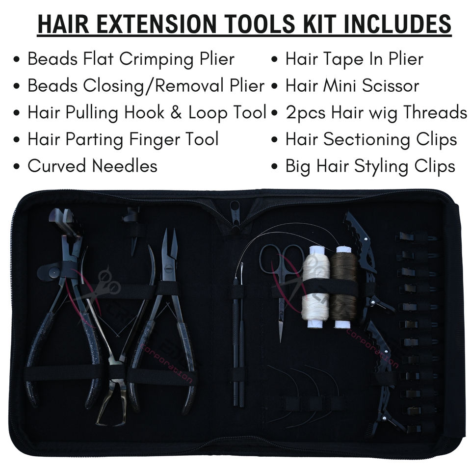 Pince à extensions capillaires de 7 pouces pour micro-anneaux et extensions à bandes, kit d'outils pour extensions capillaires avec ensemble de crochets et boucles, pinces de coiffage Jumbo et ciseaux