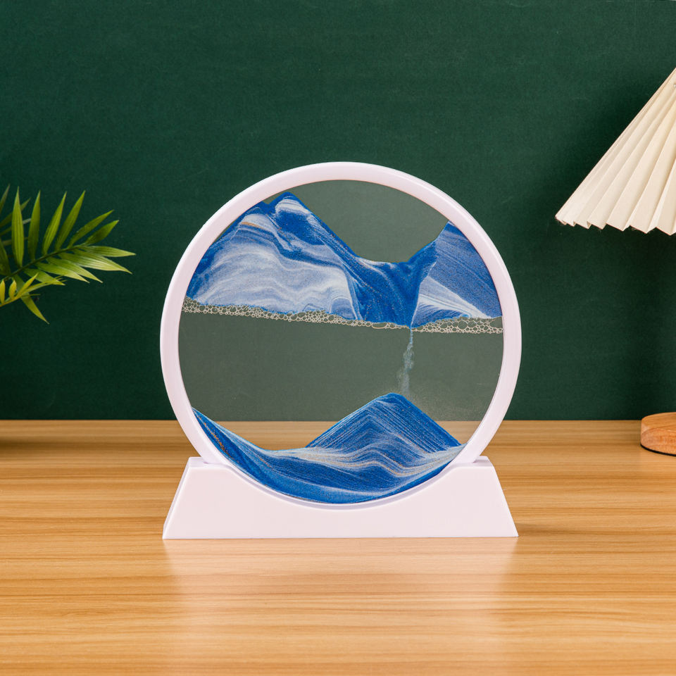 Tableau d'art de sable mouvant de 7 pouces, en verre rond, sablier 3D, paysage marin profond, peinture de sable mouvant, décoration pour la maison