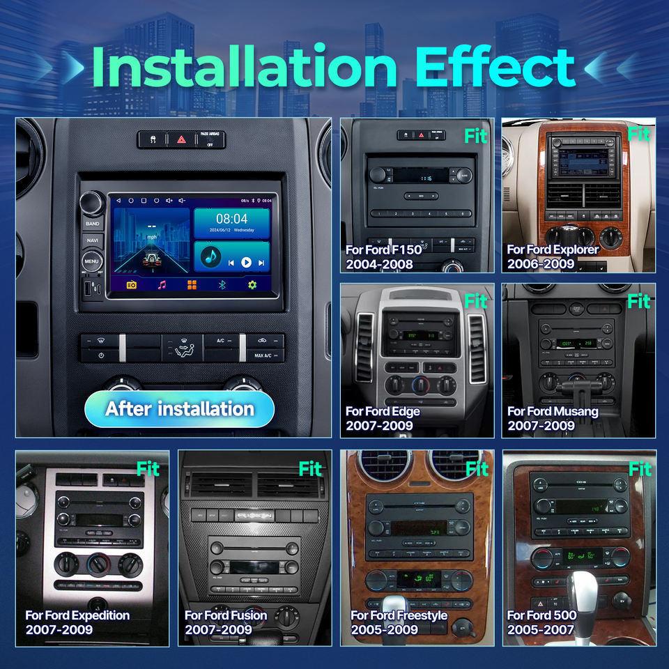 Écran radio DVD 7 pouces avec charge rapide pour Ford F150 2004-2008, montage sur tableau de bord, CarPlay sans fil, écran tactile IPS, DSP, GPS