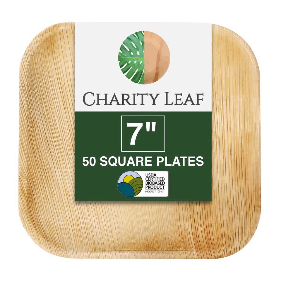 Assiette carrée en feuille de palmier naturelle de 7 pouces
