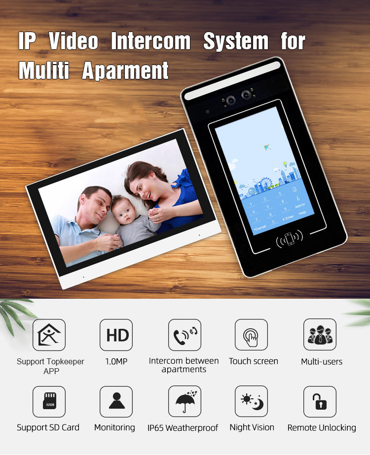 Système d'interphone multi-appartements avec écran tactile de 7 pouces, système d'interphone vidéo sans fil Wifi Sip, système de caméra de sécurité avec déverrouillage de porte