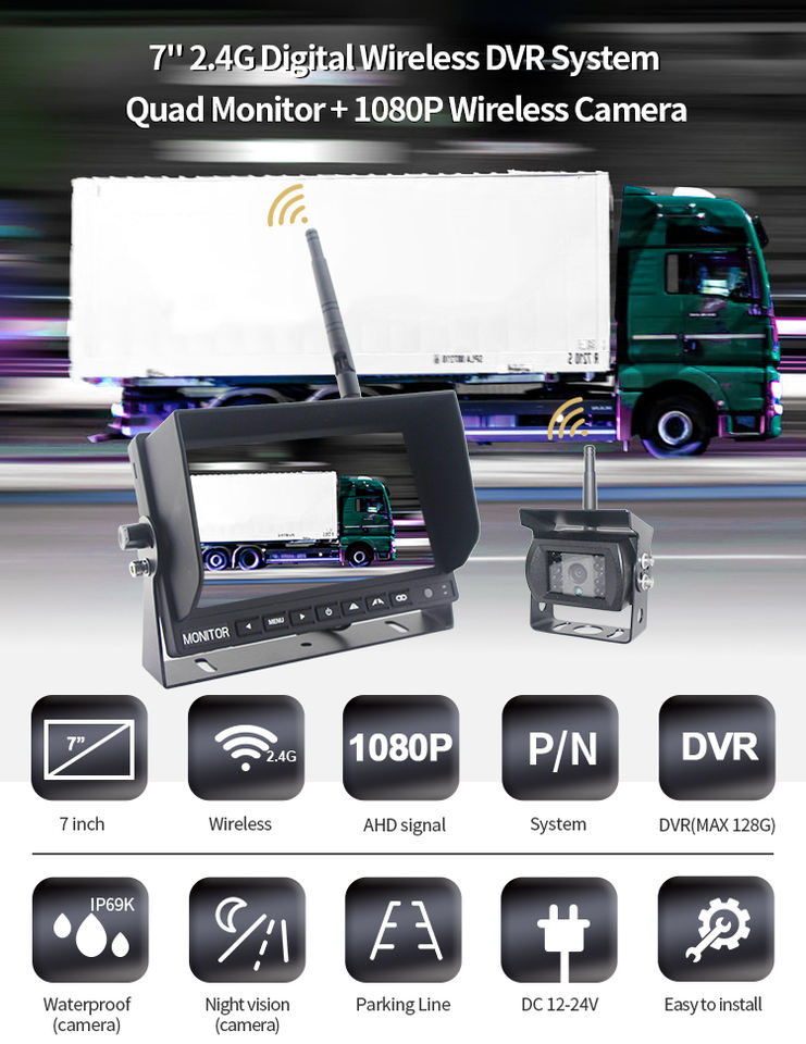 Caméra de reverse, Moniteur, Caméra de recul, Caméra Arrière sans fil, Wireless 1080P AHD Car Multi-View Camera, WIreless Car Camera System, Wireless 4CH 1080P AHD Monitor, Wireless Car Monitor SystemType