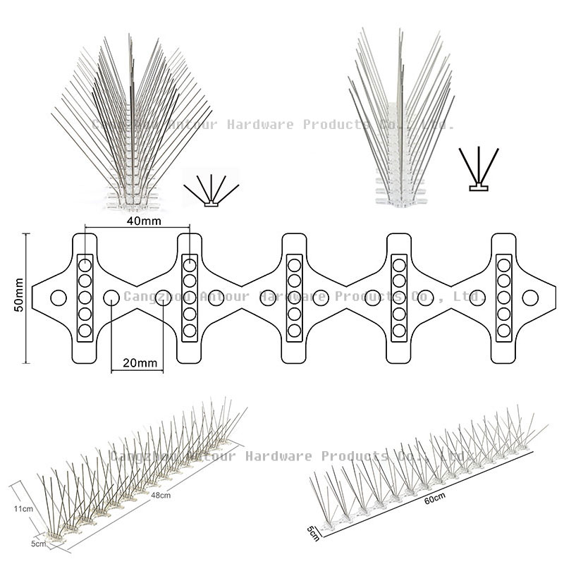 Piques anti-oiseaux en acier inoxydable de 7 pouces de long avec base en plastique pour dissuasion des pigeons et contrôle des petits oiseaux
