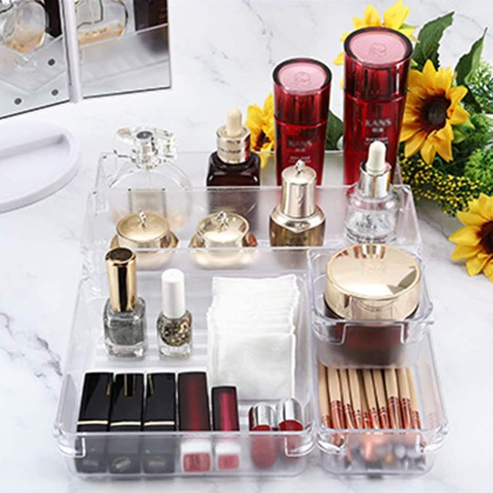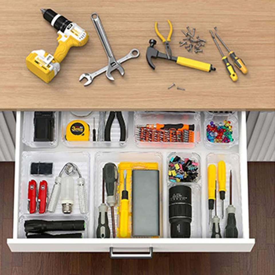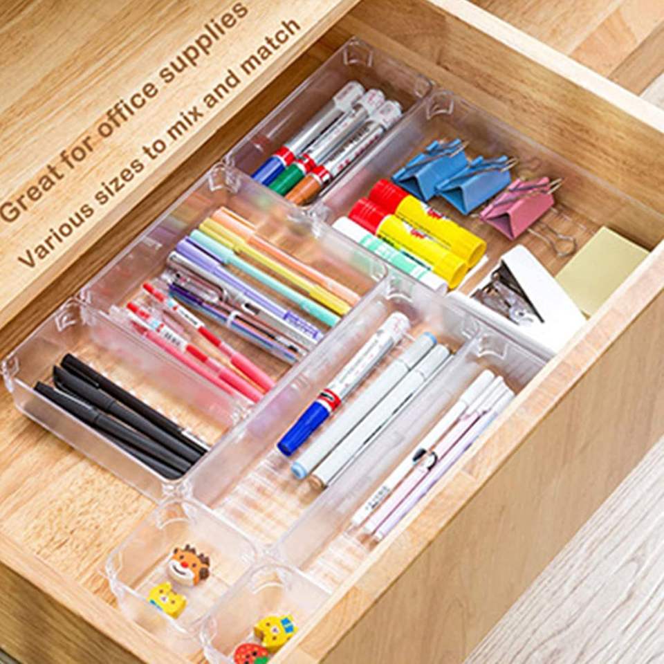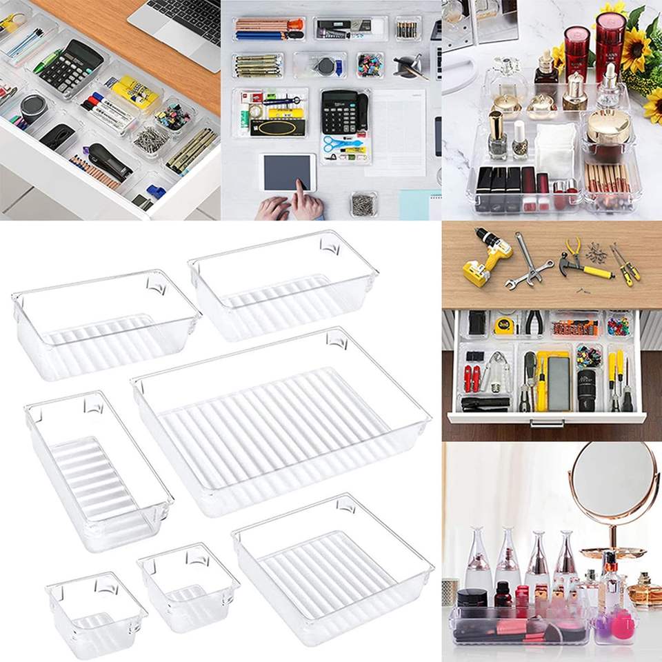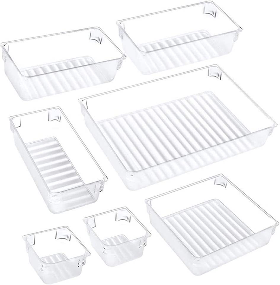 Ensemble de 7 organiseurs de tiroirs empilables multifonctionnels écologiques légers et transparents, 4 tailles, séparateurs en plastique