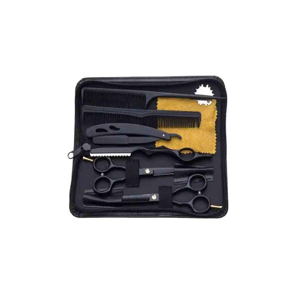 7 pièces ciseaux de coiffeur ensemble 5.5 "papier enduit barbier rasoir coupe cisaillement avec peigne allemand acier ciseaux Kits avec étui en cuir
