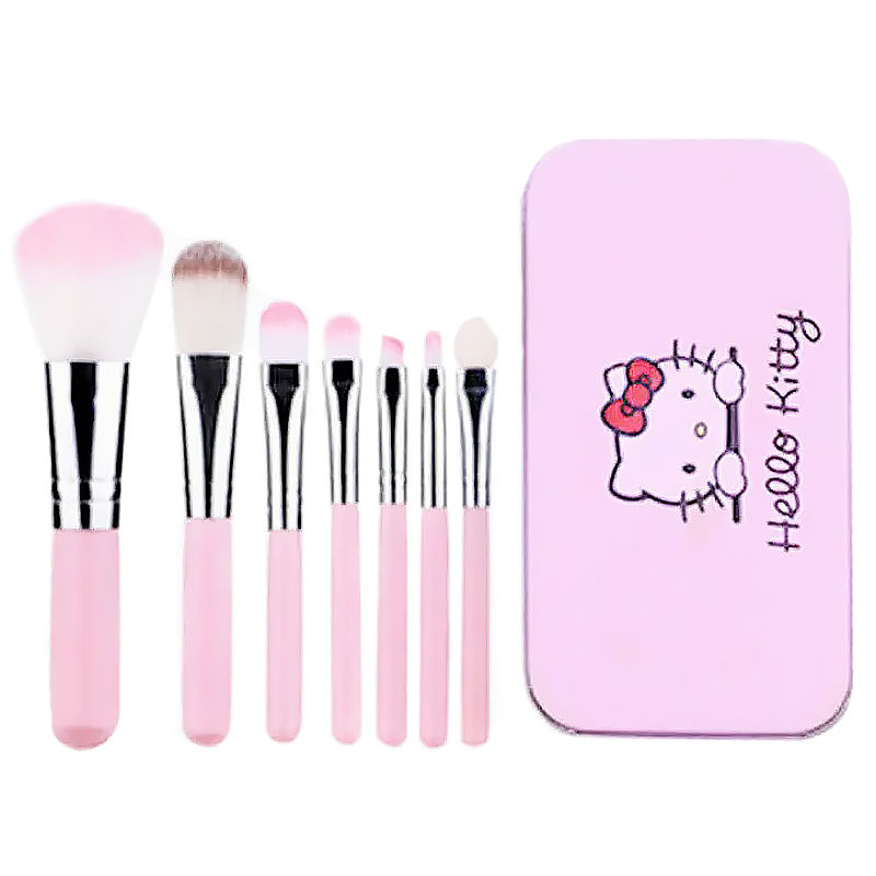 7 pièces dans la boîte hello kitty petits pinceaux de maquillage avec étui taille de voyage portable poudre noire fond de teint pinceaux pour les yeux ensemble pour le maquillage