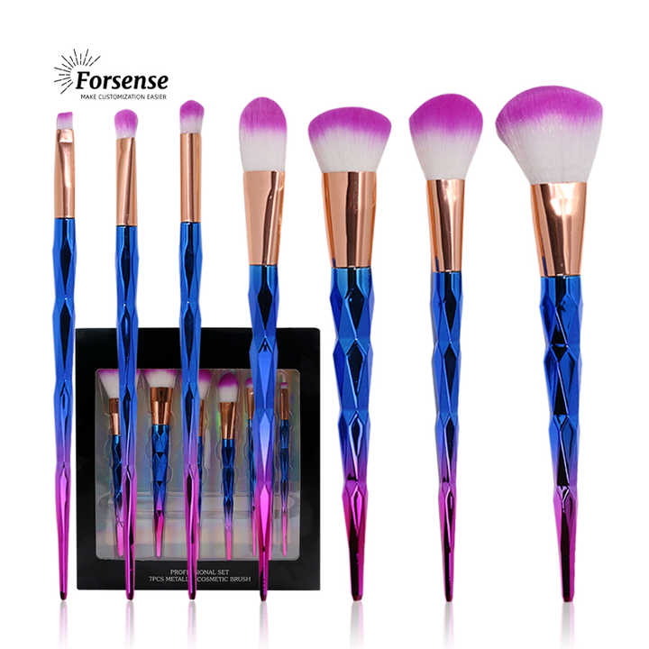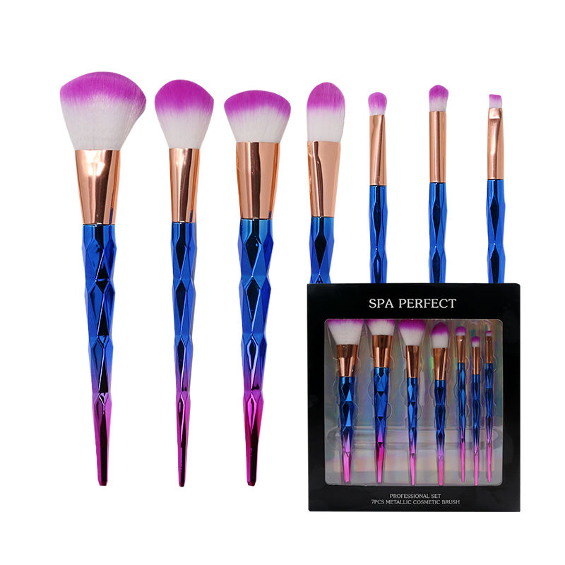 7 pièces arc-en-ciel licorne dégradé coloré pinceau de maquillage polyvalent ensemble dans la boîte végétalien mince poudre blush pinceau cosmétique beauté pinceau