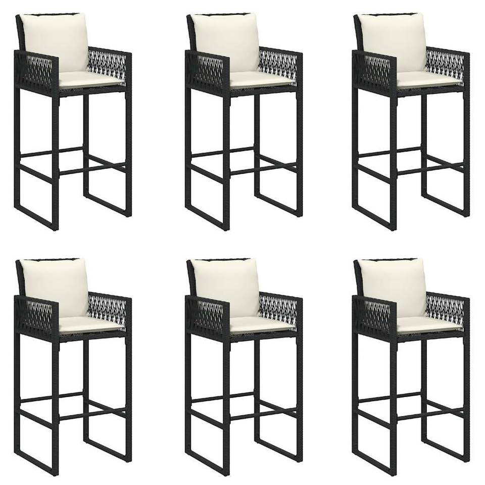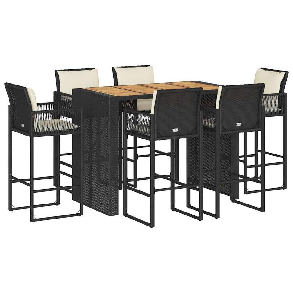 Ensemble de bar de jardin en rotin noir 7 pièces, mobilier d'extérieur résistant aux UV, design contemporain pour usage extérieur