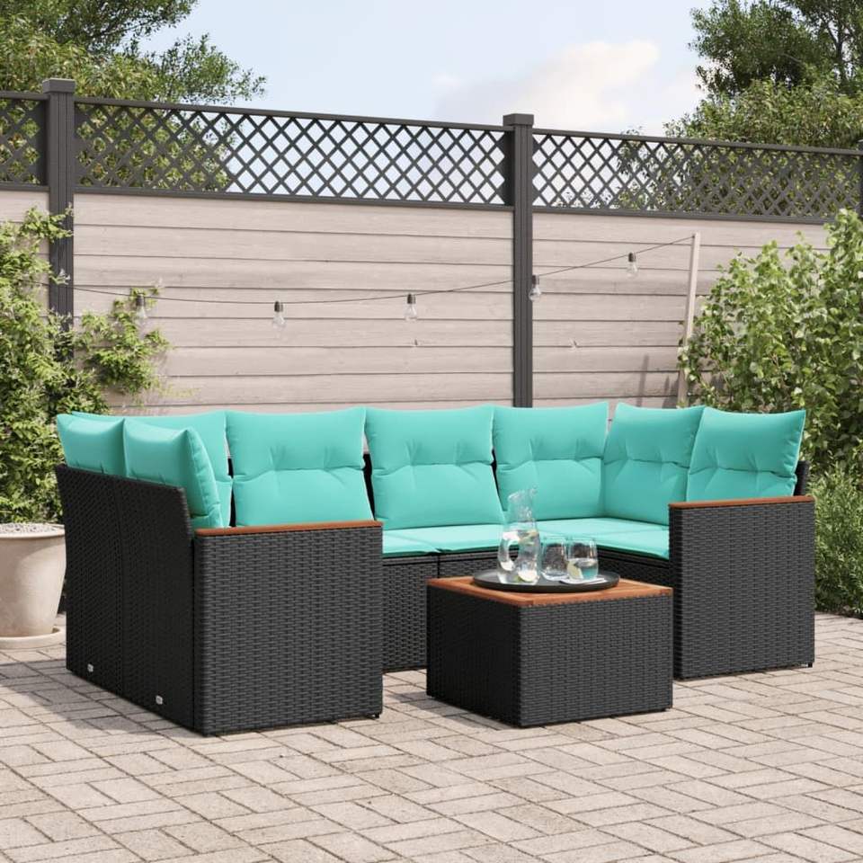 Ensemble de canapés de jardin en polyrotin noir 7 pièces avec coussins