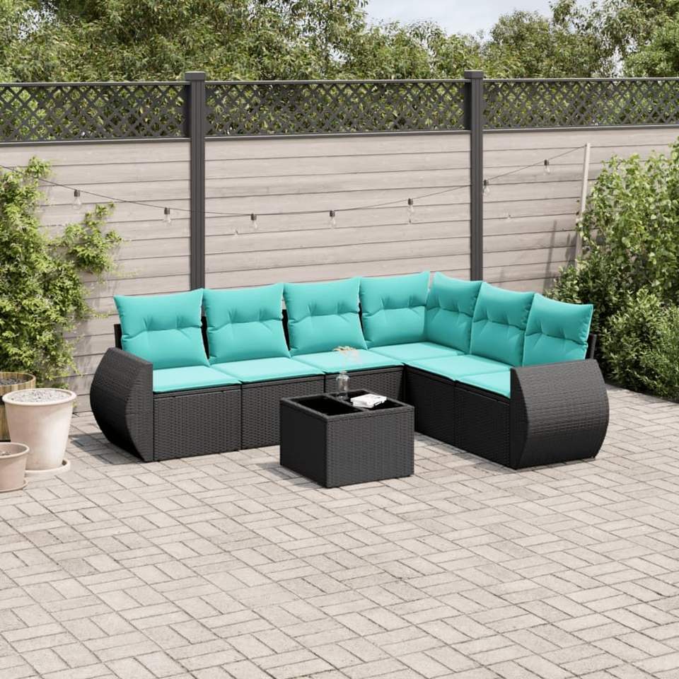 Ensemble de canapés de patio en polyrotin noir, 7 pièces, avec coussins, canapés de jardin