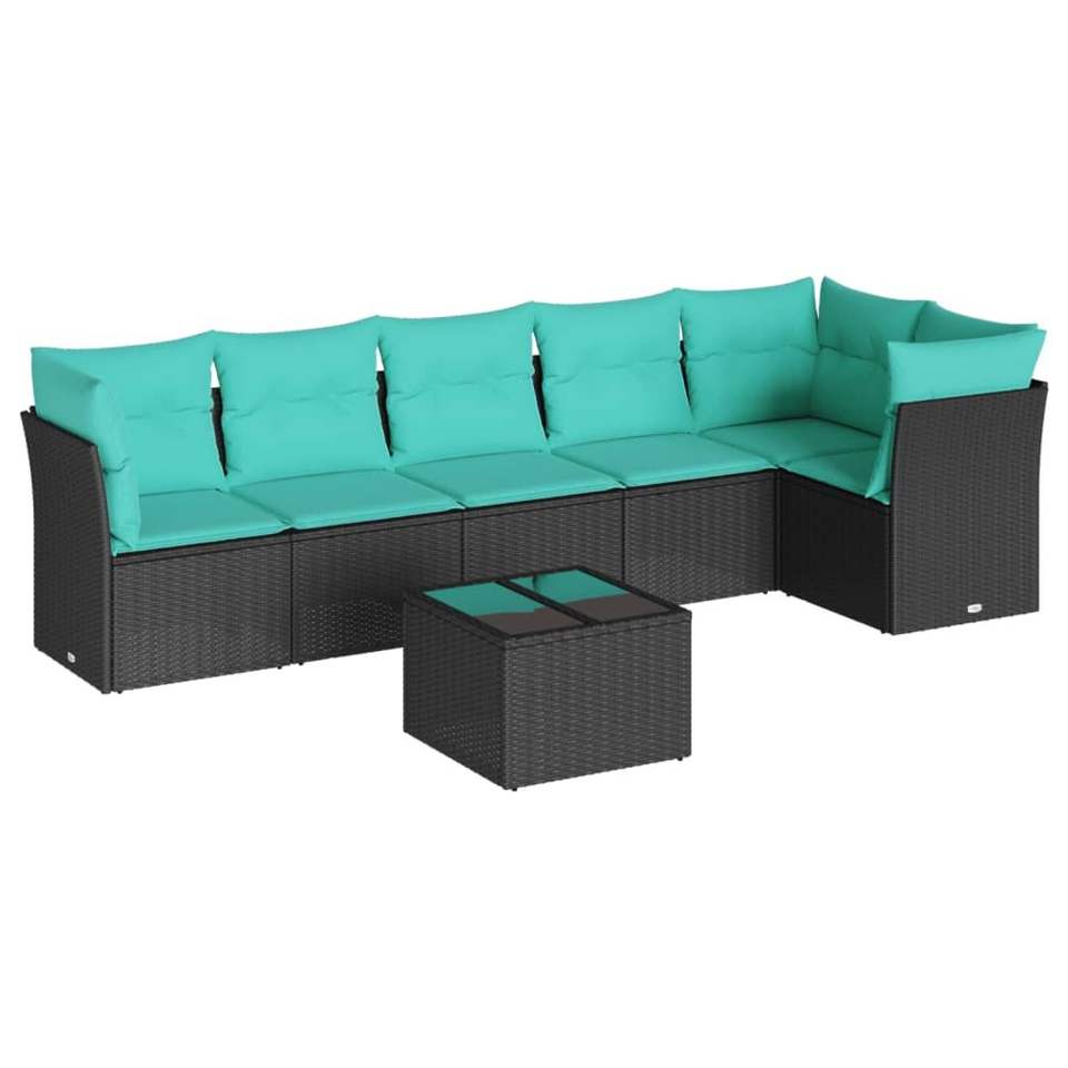 Ensemble de canapés de patio en polyrotin noir 7 pièces avec coussins, mobilier d'extérieur élégant