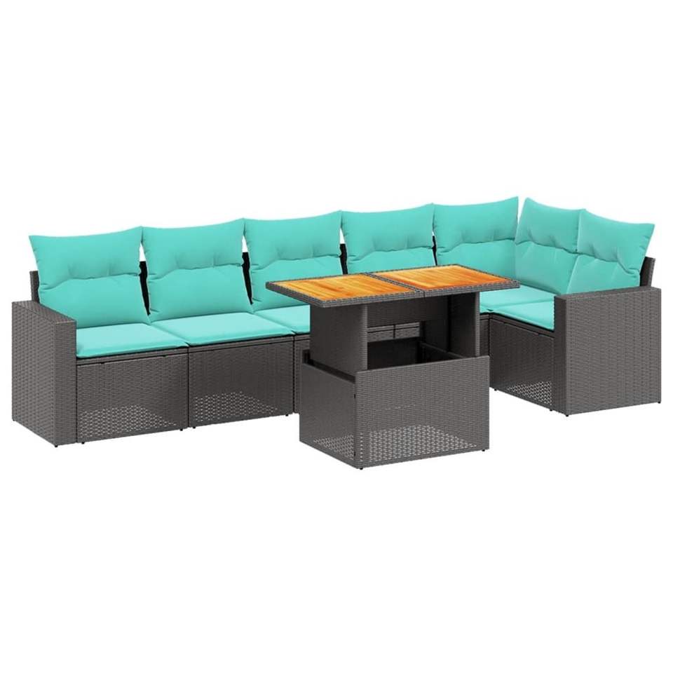 Ensemble de canapés de patio en polyrotin noir 7 pièces avec coussins, élégants ensembles de jardin