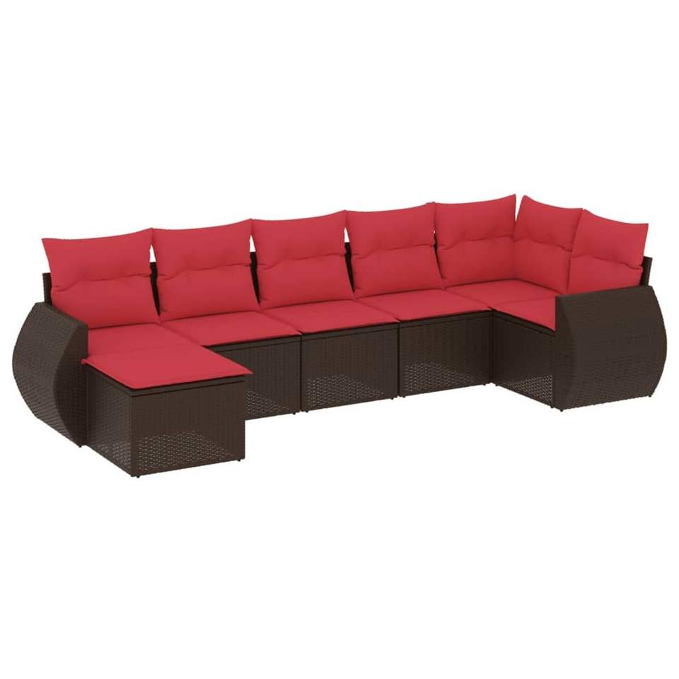 Ensemble de canapés de jardin en polyrotin marron 7 pièces avec coussins