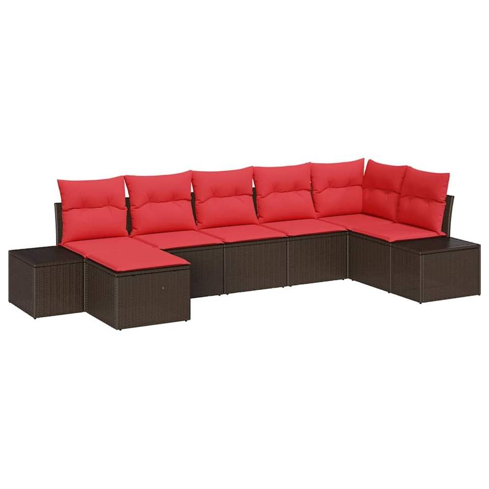 Ensemble de canapés de jardin en polyrotin marron 7 pièces avec coussins