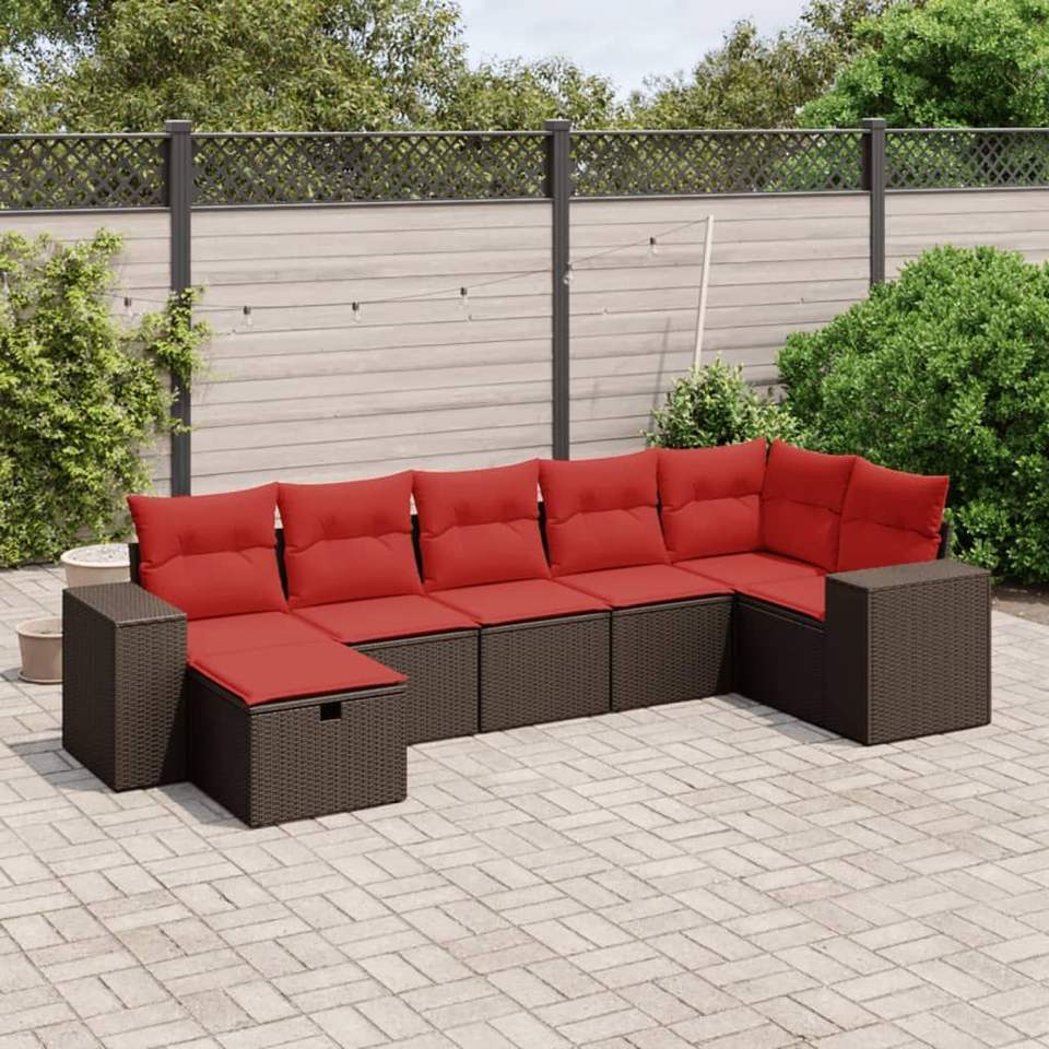 Ensemble de canapés de patio en polyrotin marron 7 pièces avec coussins, mobilier d'extérieur élégant