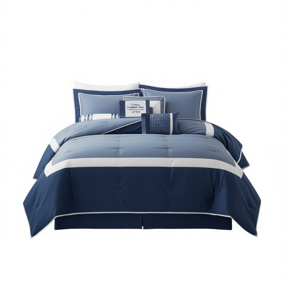 Ensemble de couette 7 pièces, design rayé moderne, taille complète, literie pour la maison, rembourrage 100% polyester, lavable en machine