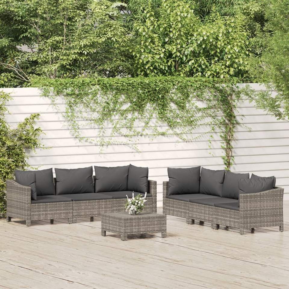 Ensemble de salon de patio en rotin gris de 7 pièces avec coussins Ensembles de jardin
