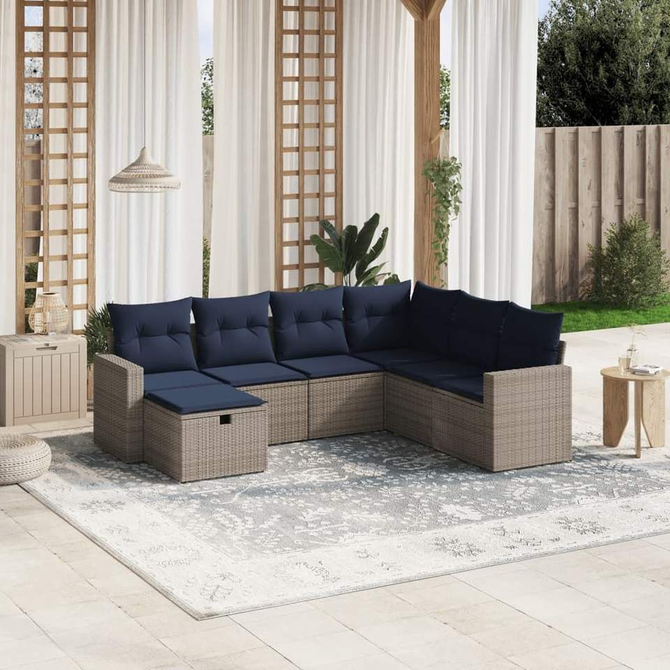Ensemble de canapés de patio en polyrotin gris 7 pièces avec coussins, ensembles de jardin