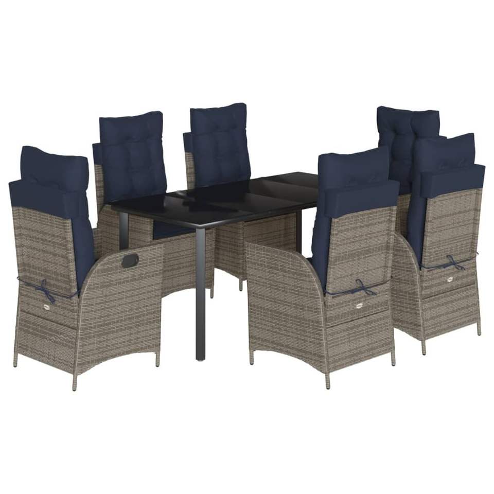 Ensemble de salle à manger de jardin en rotin PE gris 7 pièces, expérience de repas élégante en plein air