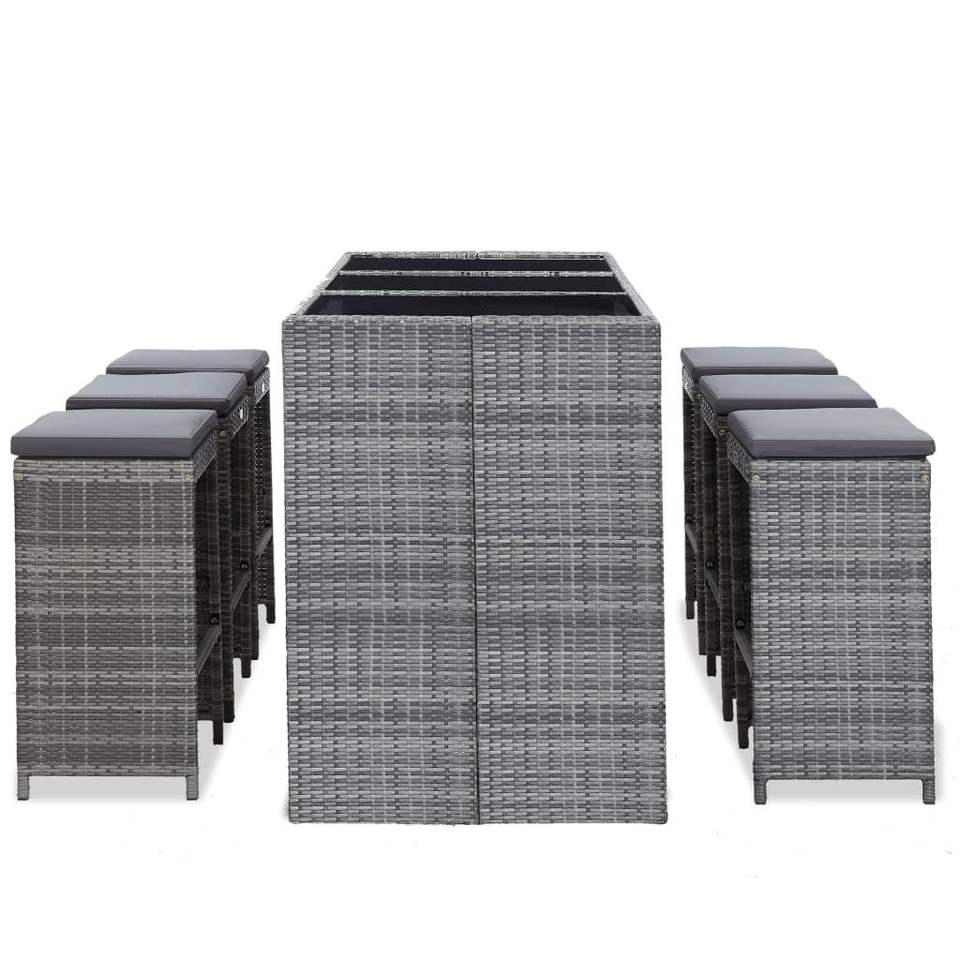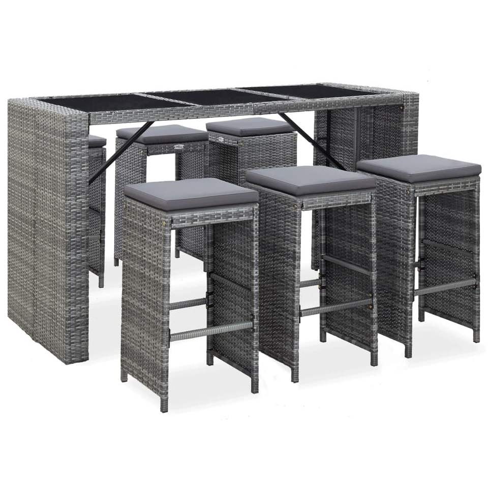 Ensemble de bar de jardin en rotin PE gris 7 pièces, mobilier de patio avec housses amovibles