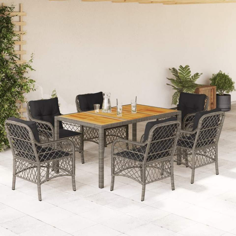 Ensemble de salle à manger de jardin en rotin gris 7 pièces avec housses amovibles, mobilier d'extérieur pour jardin, style contemporain