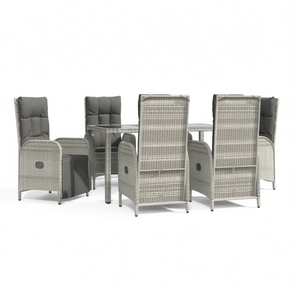 Ensemble de salle à manger de jardin en rotin gris 7 pièces, mobilier d'extérieur résistant aux intempéries, design contemporain