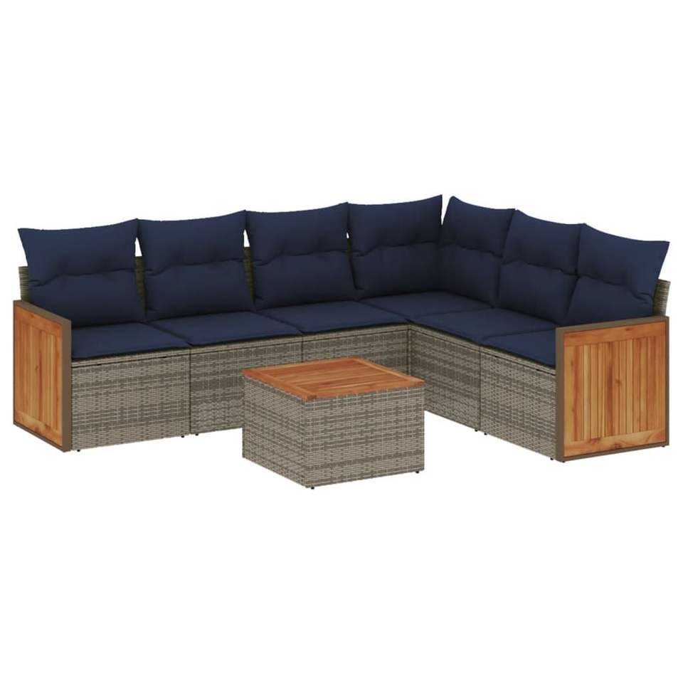 Ensemble de canapés de jardin en polyrotin gris 7 pièces avec coussins