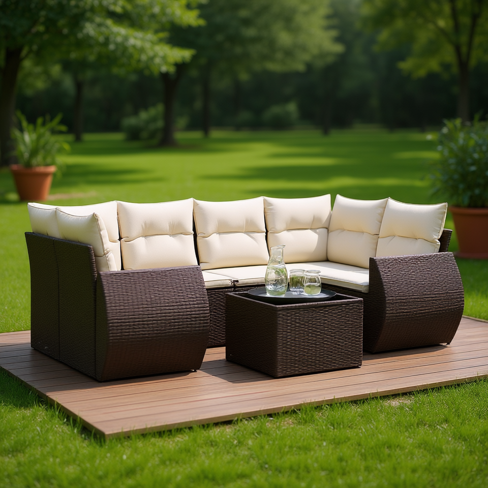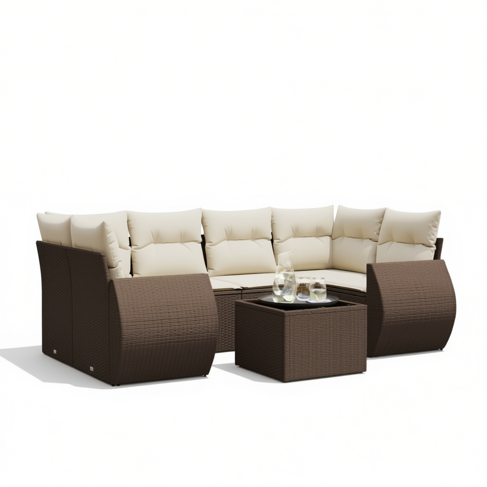 Ensemble de canapés de jardin modulaires en rotin PE brun, 7 pièces, mobilier d'extérieur au design contemporain