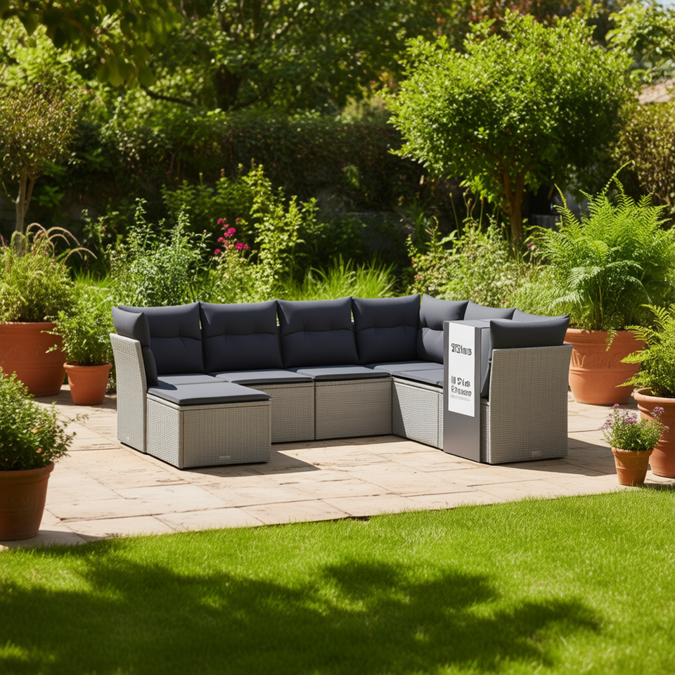 Ensemble de canapés de jardin modulaires en rotin PE gris, 7 pièces, structure en acier, mobilier d'extérieur, design contemporain, résistant aux intempéries