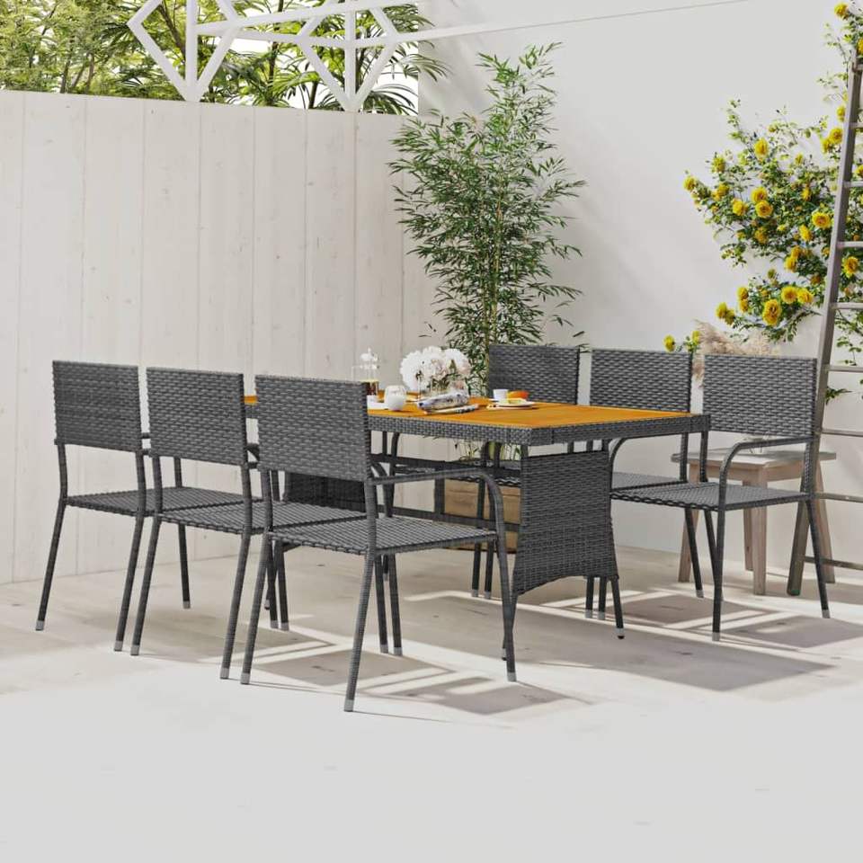 Ensemble de salle à manger d'extérieur gris en rotin PE avec structure en acier et bois d'acacia massif, mobilier de jardin 6 places, style contemporain, résistant aux intempéries