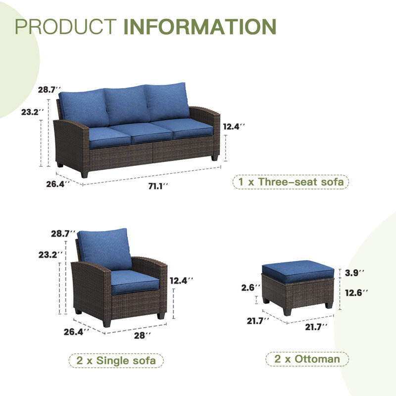 Groupe de sièges de canapé en rotin extérieur 7 pièces pour ensembles de jardin