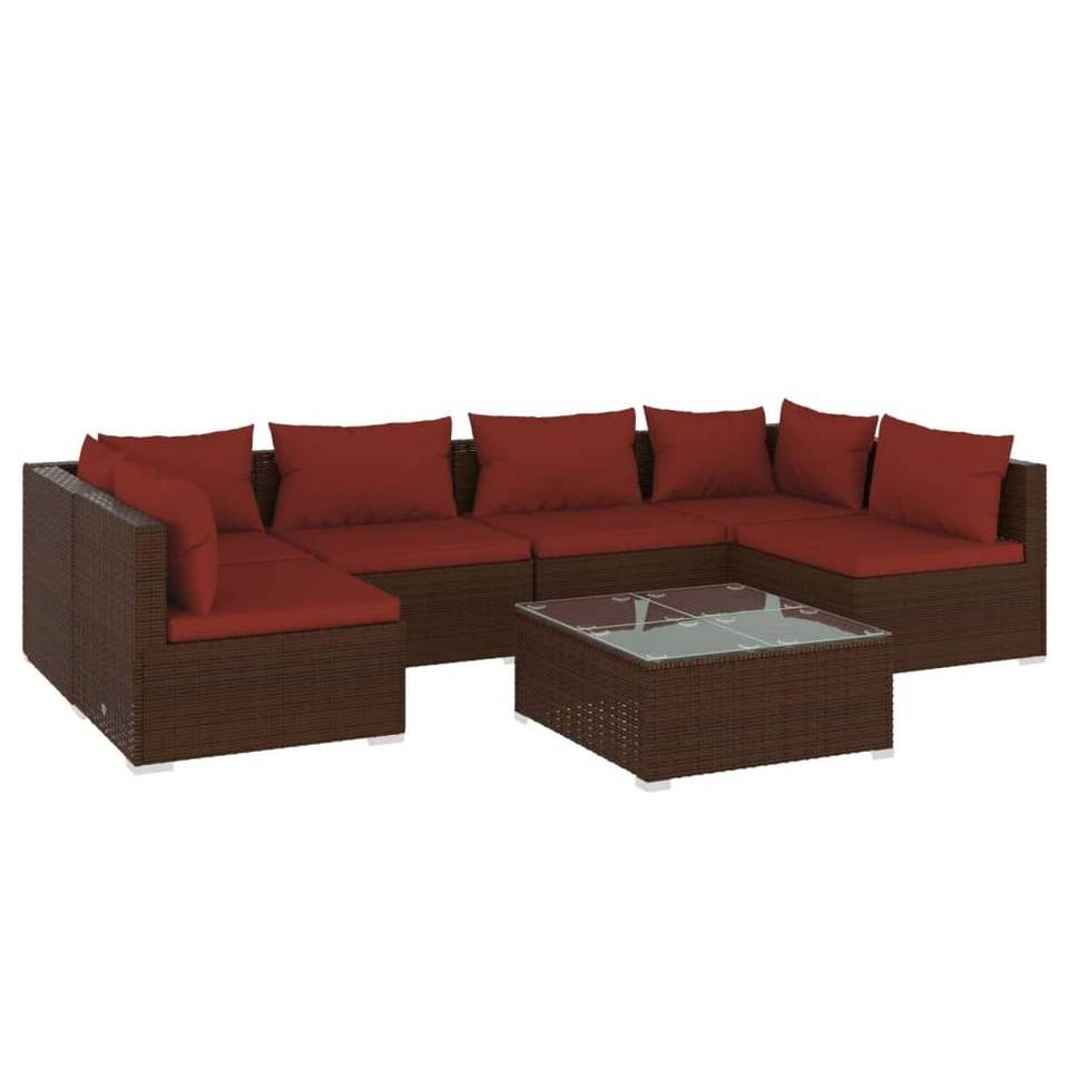 Ensemble de salon de jardin en polyrotin brun avec coussins, 7 pièces, mobilier de jardin extérieur, design contemporain