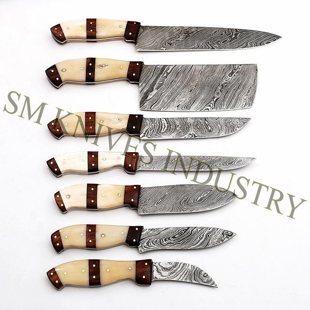 Maede — ensemble de 7 couteaux de cuisine faits à la main avec kit en cuir (Smk1088)