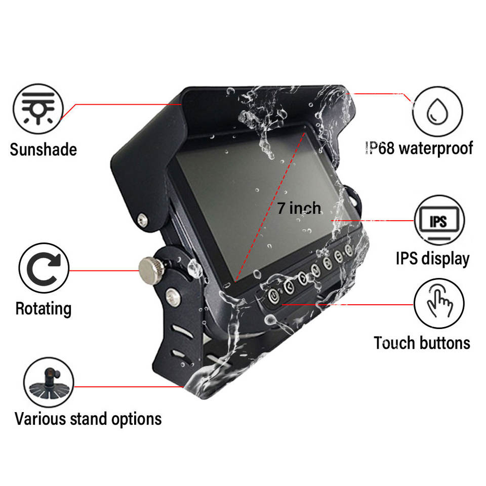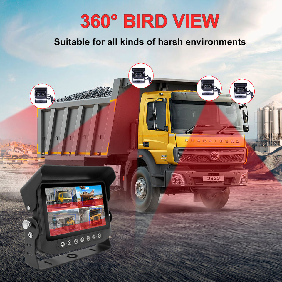 Système de caméra de véhicule 1080P AHD avec écran étanche à 4 écrans de 7 pouces, enregistrement DVR, caméras de vision nocturne pour camions lourds