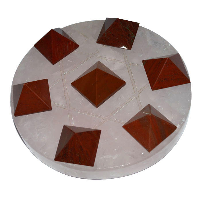 Pyramide Rose de jaspe rouge, 7 feux bleu clair, en étoile David