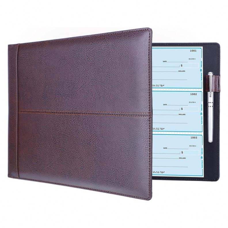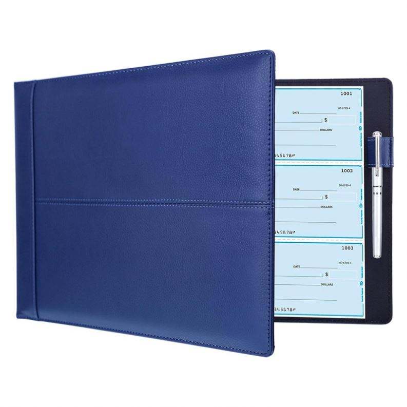 Classeur à 7 anneaux pour chéquier professionnel, capacité de 600 chèques avec pochette transparente en vinyle pour organiser les factures